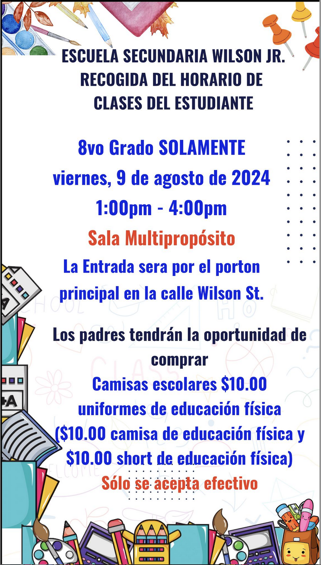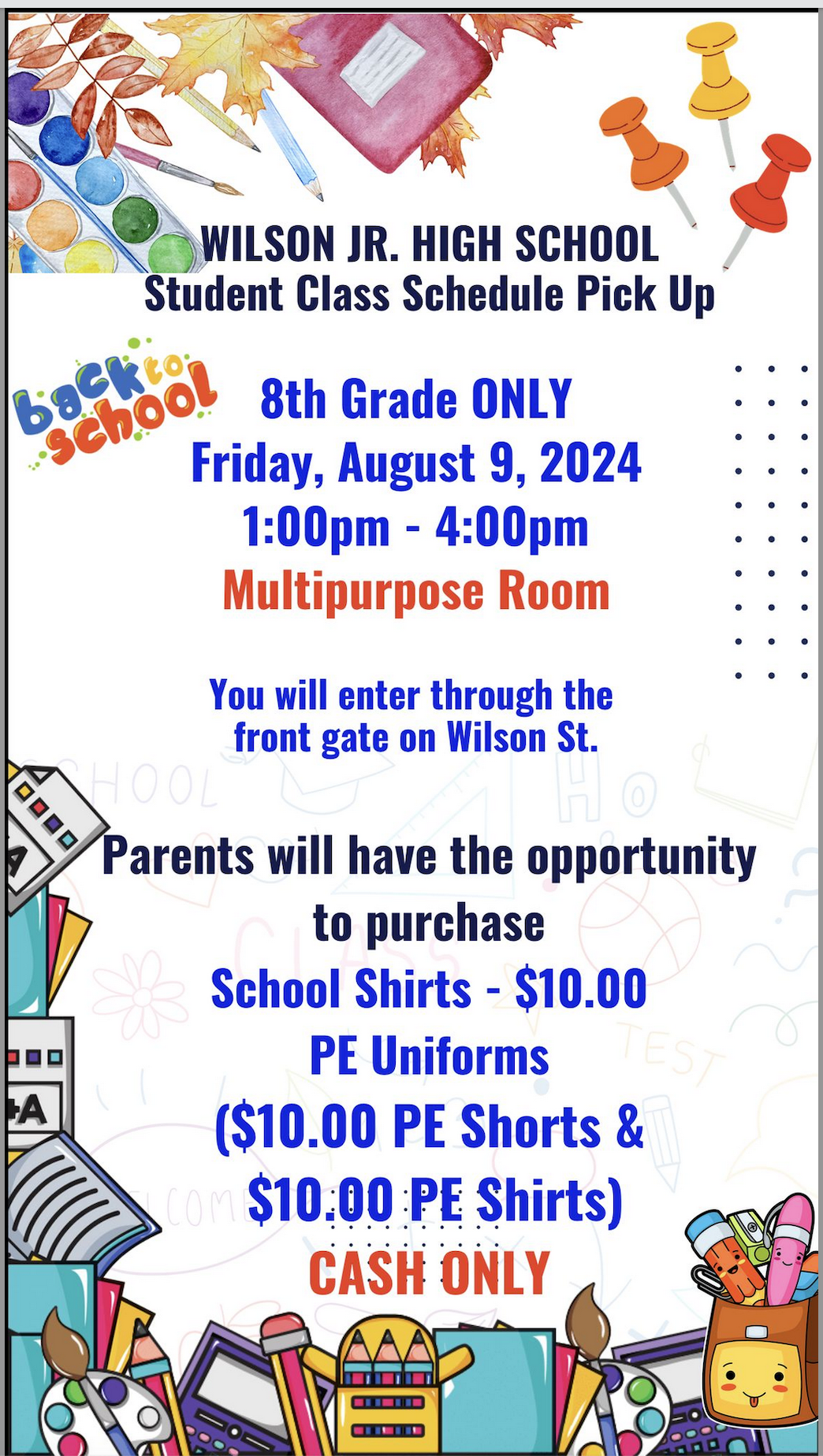 8th Grade Schedule Pickup - Registered & Approved Students Only