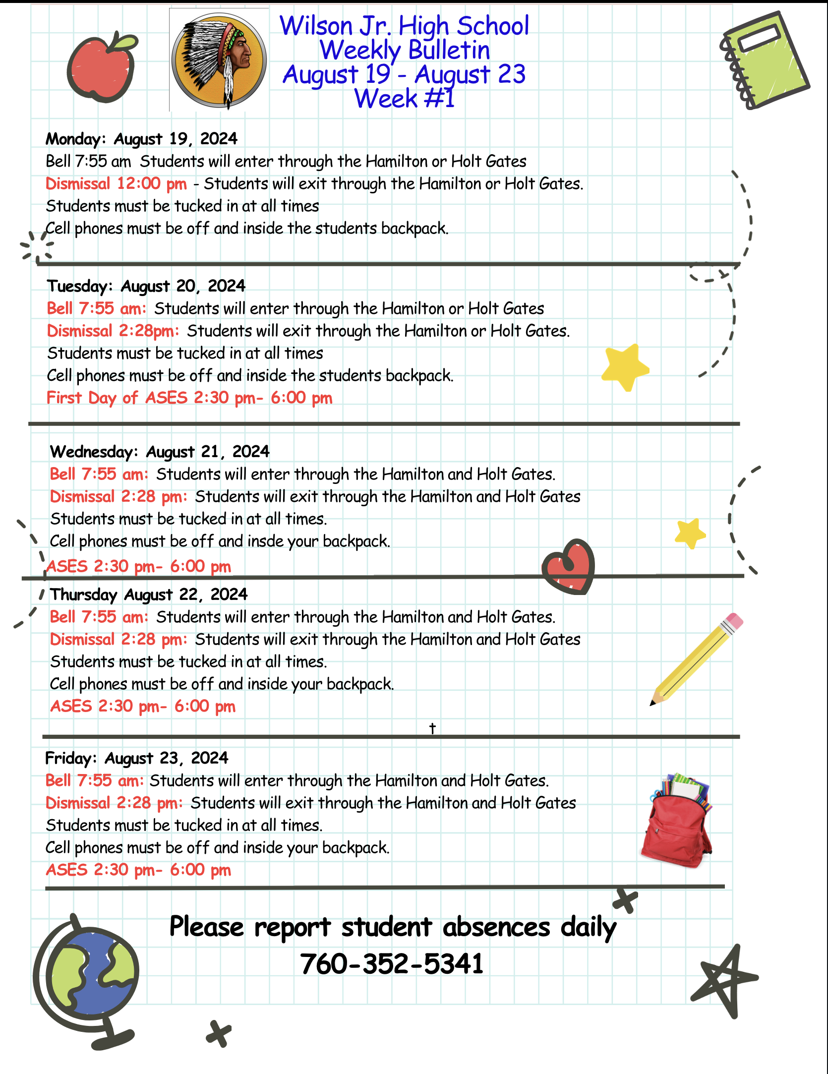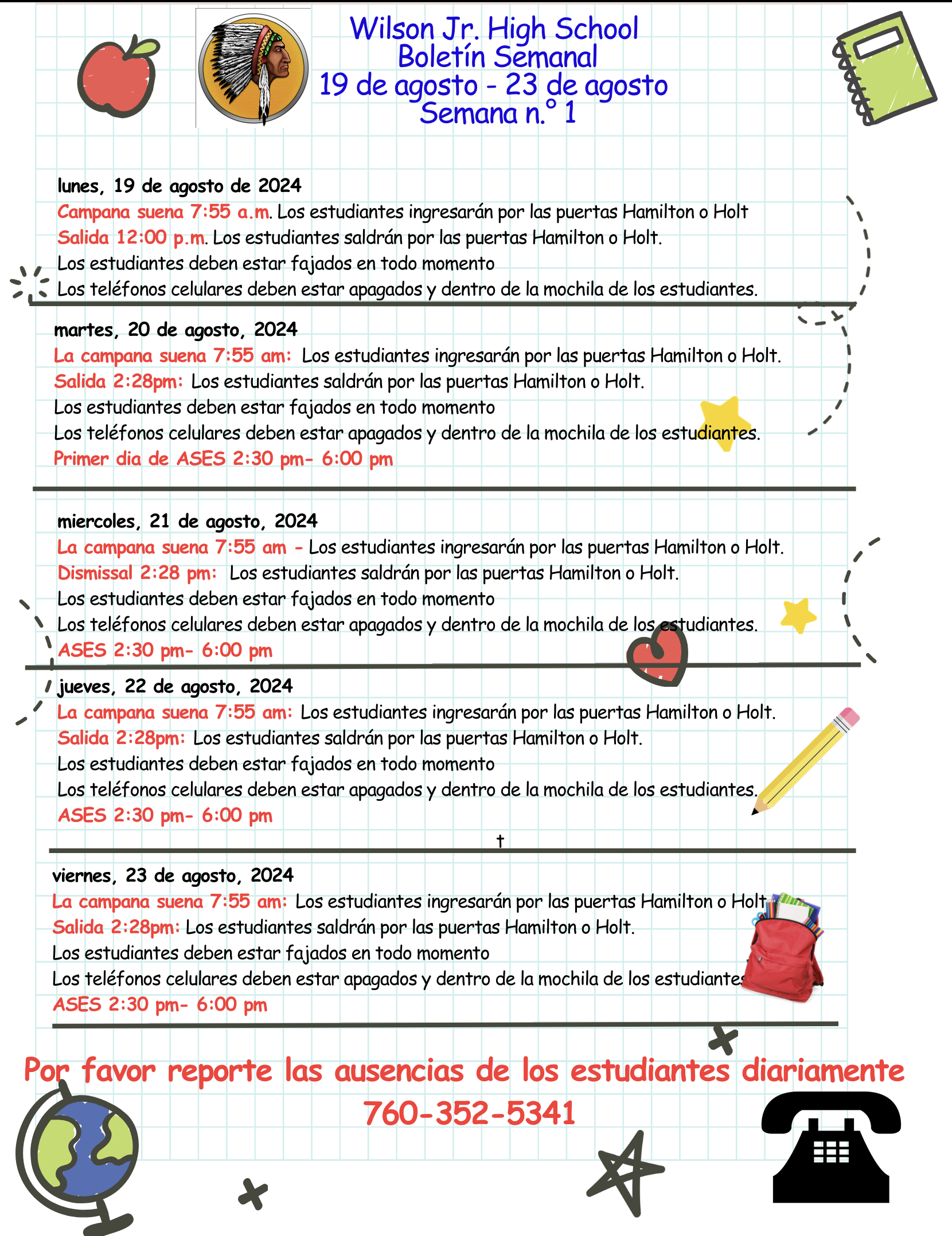 WJH Weekly Bulletin Week #1 - Boletín semanal de WJH Semana n.° 1