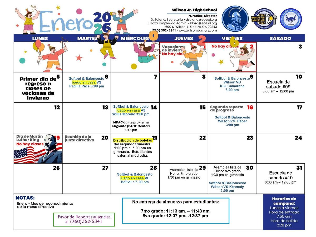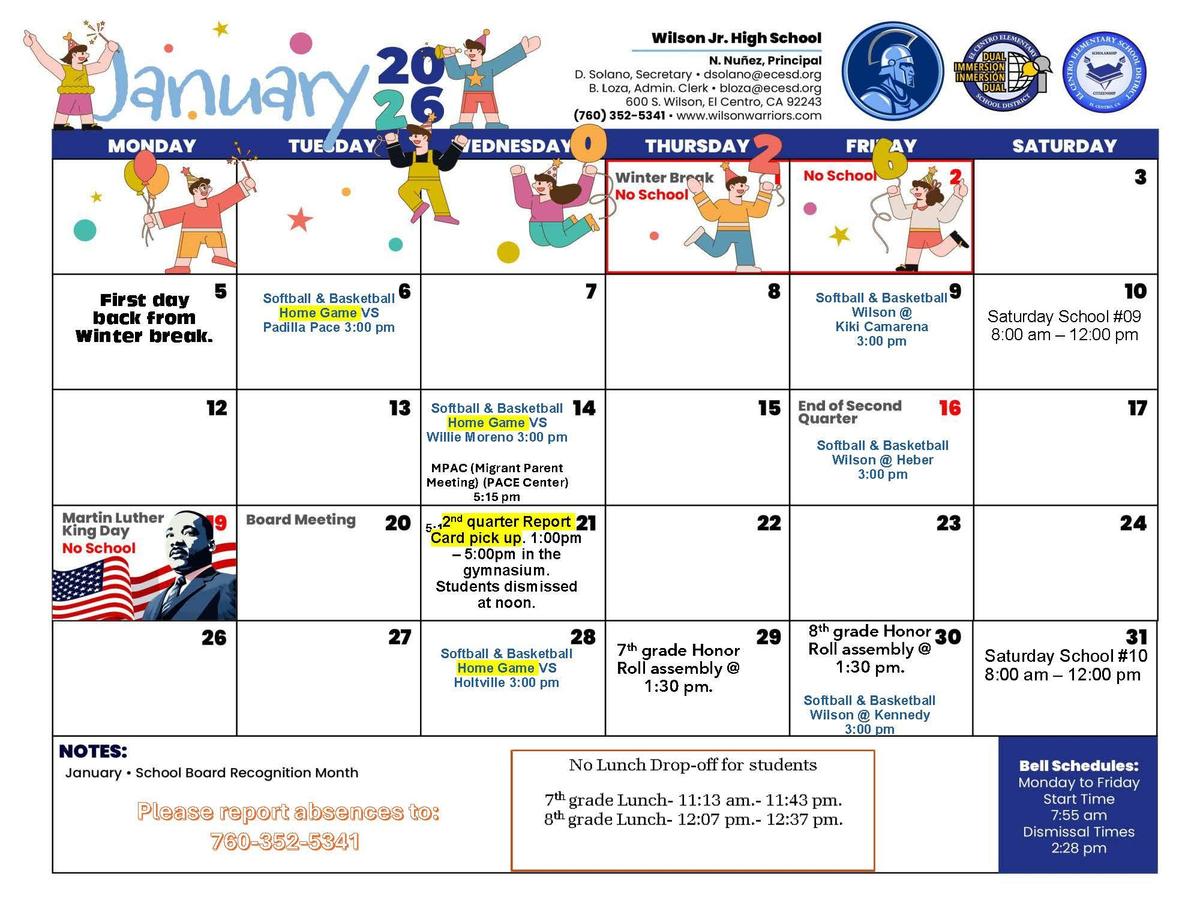 Wilson Jr. High School January Calendar